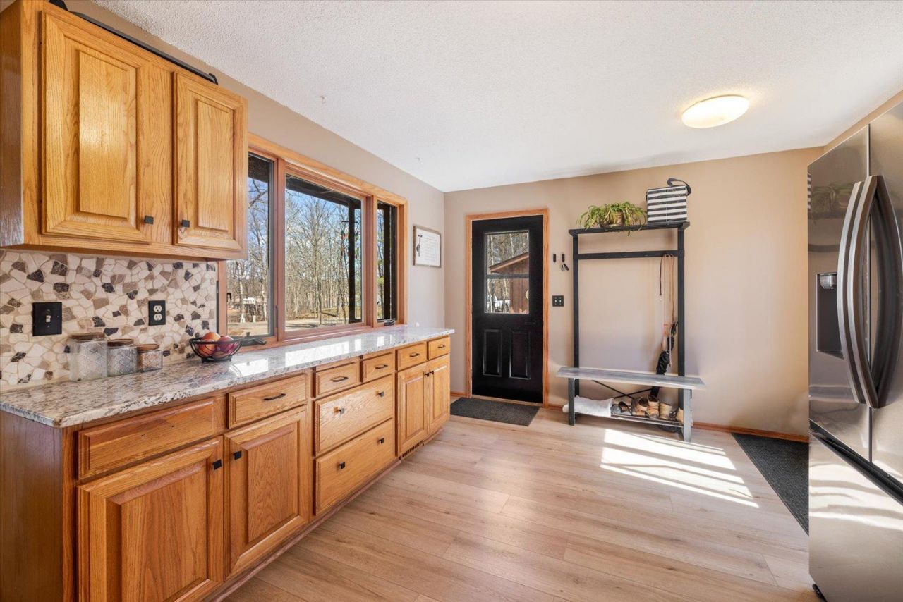 Over two and a half wooded acres right inside Grand Rapids city limits is what sets this property apart before you even walk through the door. Mature trees surround the property on all sides, offering privacy without sacrificing proximity to lakes, parks, downtown, Yanmar Arena, and schools.The kitchen has been completely remodeled with granite countertops, and new paint throughout ties the interior together. The fireplace anchors the main living area as a natural gathering point through the colder months, and the layout moves easily between living, cooking, and dining spaces. A full basement adds flexibility to this 3 bedroom, 2 bathroom home. The two-car garage handles the practical side.A new deck built in 2025 overlooks the wooded lot, and a new septic system installed in 2020 means major infrastructure is already taken care of. A 2.66-acre in-town property with a remodeled kitchen, updated septic, full basement, and a fireplace; that combination is hard to find in one place.