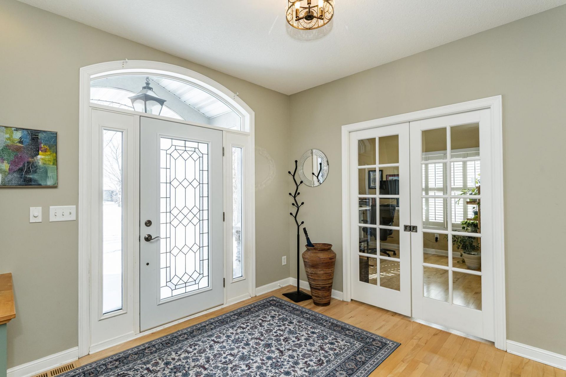 Looking for a home that truly has it all? This 4 bed, 4 bath home has been meticulously cared for and is move in ready. The spacious entryway opens to a main floor filled with natural light, gleaming hardwood floors and quality custom finishes. Enjoy main floor living with a formal dining room, primary bedroom with en suite, office area (that could be used as a 5th bedroom), spacious living room, kitchen, laundry room and convenient, well planned spaces. The kitchen is gorgeous with plenty of natural light, lots of prep space, lovely cabinetry, a custom designed center island and pantry space just steps away. The eat in kitchen opens to an inviting sunroom that serves as a year round sanctuary and escape. The main floor primary bedroom with en suite offers a beautiful view of the trees and garden space in the backyard. The en suite has a double shower, corner tub, double sink, heated floors, and custom designed walk in closet. The lower level boasts 3 bedrooms, a utility room with plenty of storage shelves, a huge living room, and an oversized double patio door walkout to the backyard patio. Enjoy the spring sunshine on the maintenance free deck overlooking the deer gated garden, perennials, and lower patio. The 3 stall garage offers workshop space and plenty of storage. Quality finishes, quiet culdesac location, and well planned spaces. This home has it all!